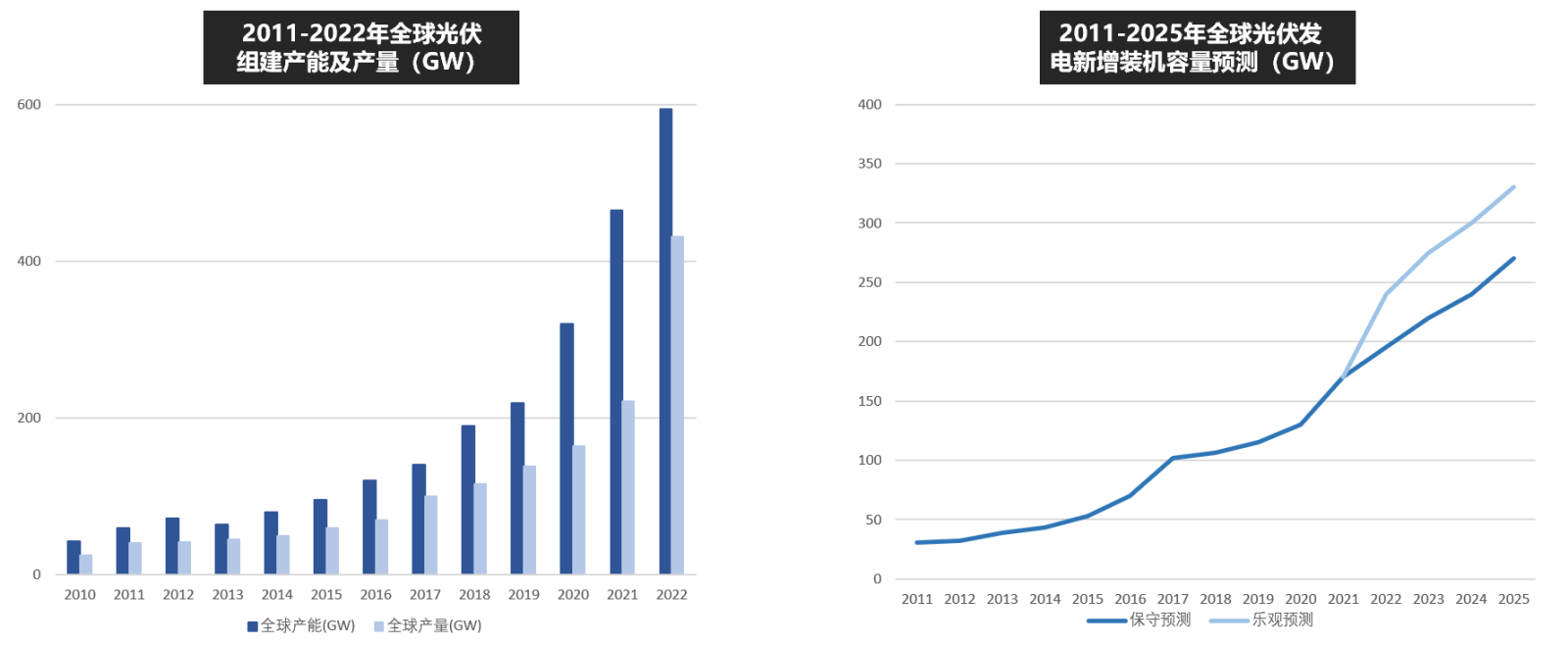 近年全球碳中和目标愈加明确,光伏有望引领可再生能源进入快速发展期。在应对能源危机和加强环境保护的双重驱动下,光伏产业受到世界各国的大力扶持,整体呈现快速向上发展态势。从产业规模看,2021年,全球组件产能和产量分别达465.2GW和220.8GW,同比增长率高达45.4%和34.9%,据预测,2022年全球光伏组件产能将逼近600GWh。在全球需求指数式扩张的推动下,2007年至2020年期间,进入光伏设备制造市场的全球企业总数激增150%,达到近1900家,其中中国企业数量在此期间几乎翻了两番,达到700多家(RTS,2021)。